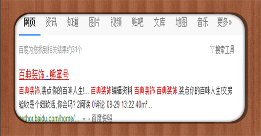 熊掌号,算是比较新的产品了,针对手机端,因为现在手机用户越来越多,在2020年末,熊掌号的流量将达到80%,目前百度搜索已经分流30%给了熊掌号,百典装饰也是一家与时俱进,跟得上潮流的公司,看准前景,立马出手!