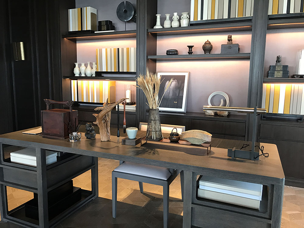 书房的装修必须考虑安静、采光充足、有利于集中注意力,这一效果需要用色彩、照明、饰物来营造。色彩宜采用明亮的白色或灰棕色等中性颜色,不宜太复杂。灯光光线要柔和明亮,过于刺眼的灯光容易造成眼部疲劳。为了让人注意力集中,不要摆放过多饰品,以免分散注意力,扰乱人的情绪。装饰盆景不宜选用大盆的鲜花,而应以矮小、常绿的叶观植物为好。