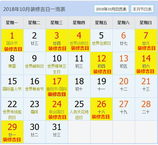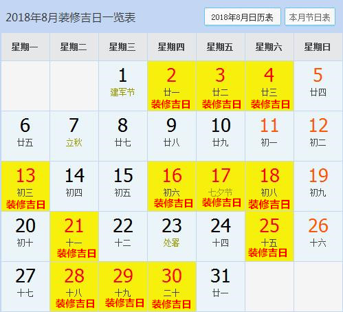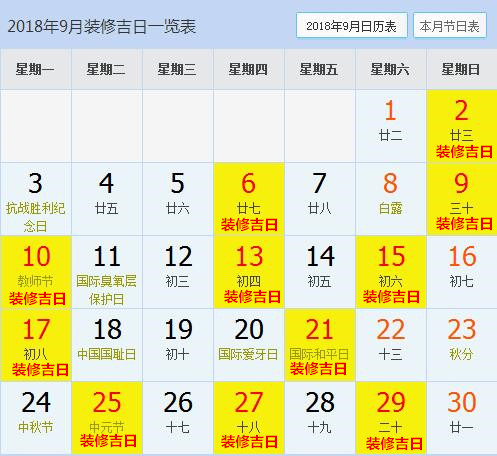 根据风水学的命理,房子装修是一件非常重要的事情。大家一般会在房子装修之前寻找一个好的黄道吉日,所谓:“天时地利人和”,只有三个条件满足了,那房子装修起来才会更加顺利。那么2018年下半年装修的黄道吉日有哪些呢?下面就由百典小编带大家一起来看看