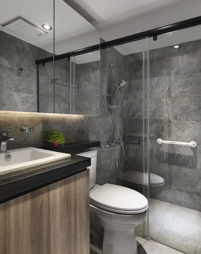 由于空间不算太大,设计师以多元的材质却相近的色系丰富空间,像纹理强烈的实木贴皮、屋主喜爱的文化石、深蓝浅灰的壁布以及原始质感的水泥墙面等;以大面积的灰色为中间主调平衡各方跳色,免去过度缤纷的杂乱,混搭出略带北欧风的明亮温暖。