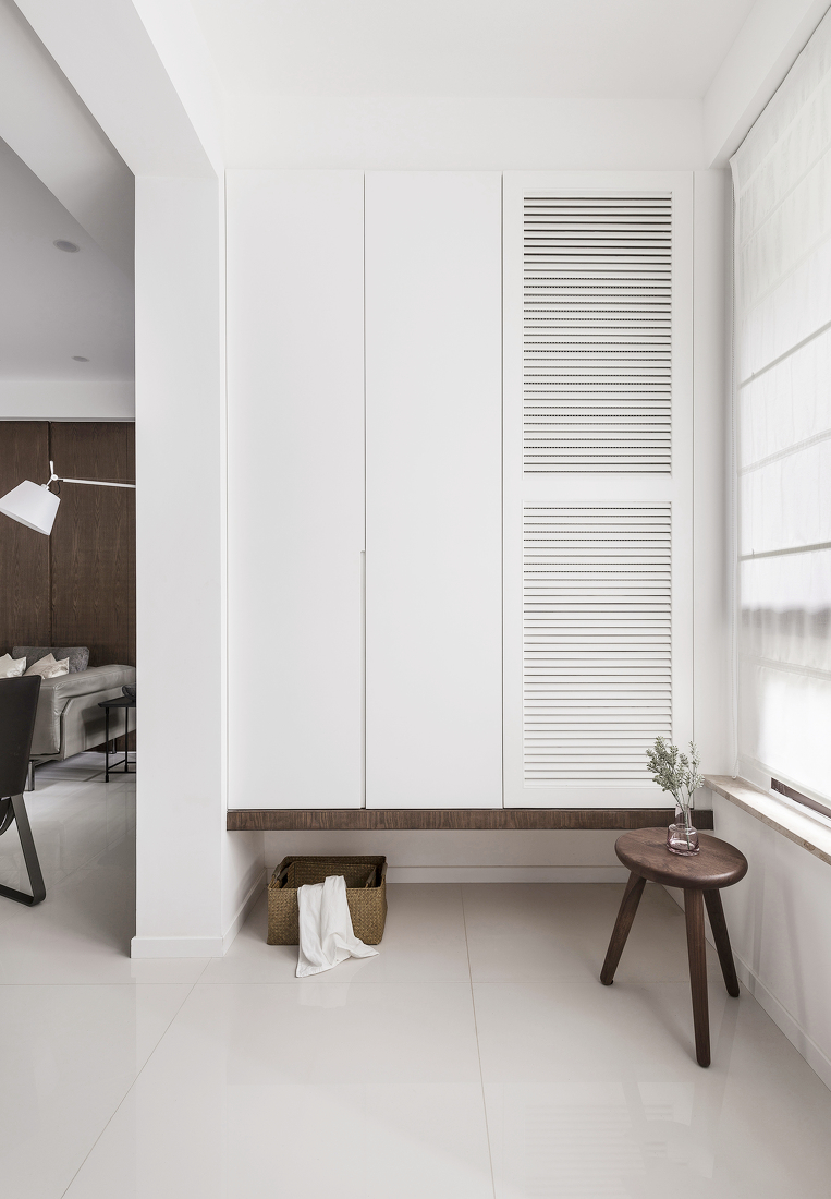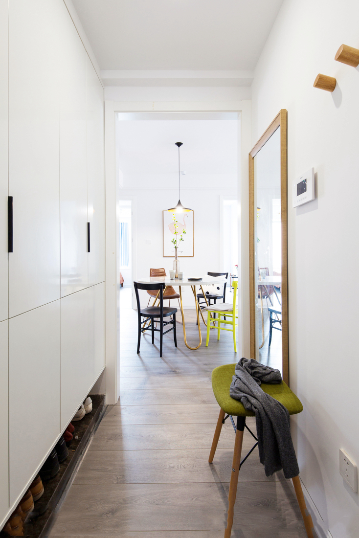 尺寸为:1170*380*1140(mm),采用板式加实木的作为鞋柜的材质,象牙白的颜色,给人以宁静和优雅,充满田园生活的气息。